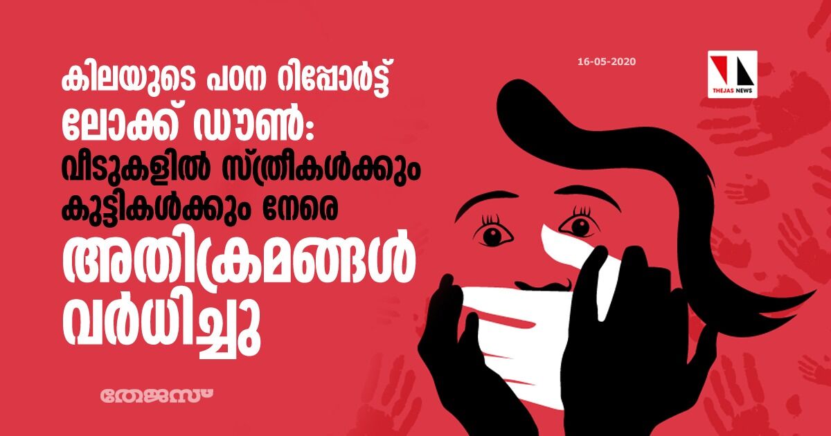 തിരുവനന്തപുരം: ലോക്ക് ഡൗൺ കാലത്ത് സംസ്ഥാനത്തെ വീടുകളിൽ സ്ത്രീകൾക്കും കുട്ടികൾക്കും നേരെയുള്ള അതിക്രമങ്ങൾ വർധിച്ചതായി കില(കേരള ഇൻസ്റ്റിറ്റ്യൂട്ട് ഓഫ് ലോക്കൽ അഡ്മിനിസ്ട്രേഷൻ)യുടെ പഠനറിപ്പോർട്ട്. വിവിധ ഹെൽപ്പ് ലൈനുകൾക്ക് 2020 മാർച്ച് 23 മുതൽ ഏപ്രിൽ 18 വരെ ലഭിച്ച പരാതികളുടെ അടിസ്ഥാനത്തിലാണ് റിപ്പോർട്ട് തയ്യാറാക്കിയത്. കിലയുടെ വെബ്സൈറ്റിൽ ഈ റിപ്പോർട്ട് പ്രസിദ്ധീകരിച്ചിട്ടുണ്ട്. അതേസമയം, നേരത്തെ നിലനിൽക്കുന്ന കുടുംബ പ്രശ്നങ്ങൾ ലോക്ക്ഡൗൺ കാലത്ത് കൂടുതൽ വഷളായതാണ് പരാതികൾ കൂടാൻ കാരണമെന്നാണ് സ്ത്രീ ശാക്തീകരണ രംഗത്ത് പ്രവർത്തിക്കുന്നവർ പറയുന്നത്.