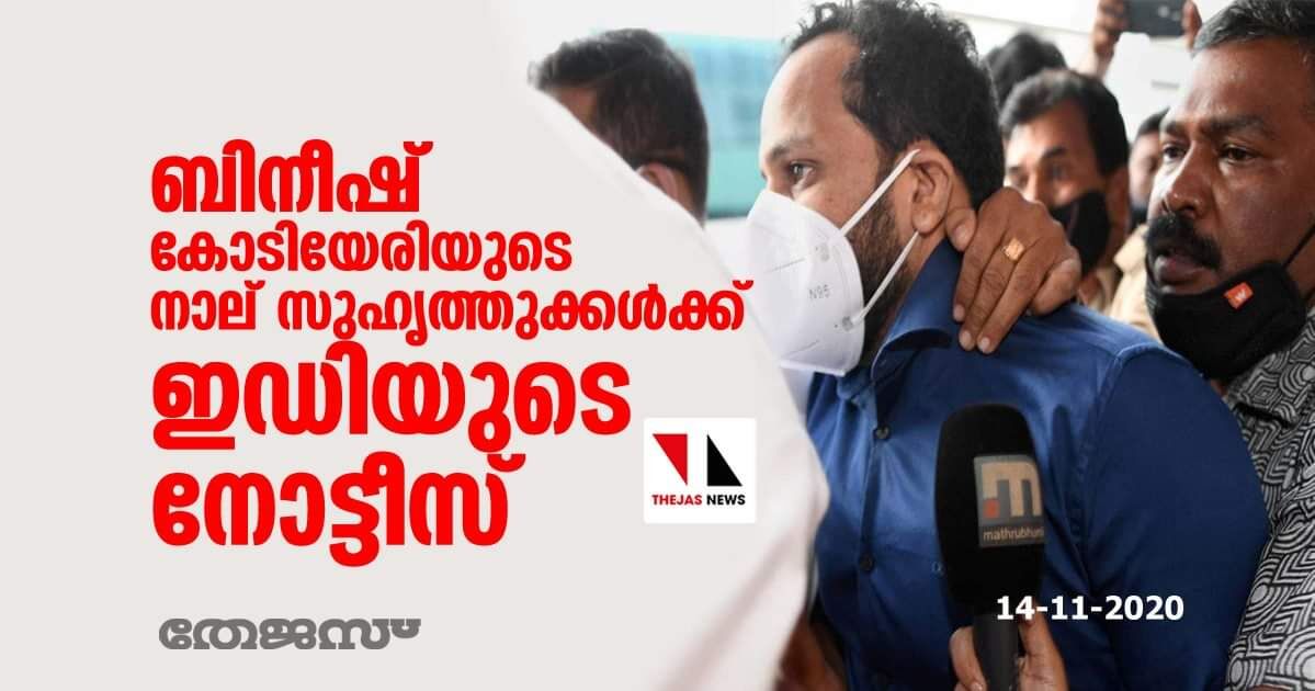 ബിനീഷ് കോടിയേരിയുടെ നാല് സുഹൃത്തുക്കള്ക്ക് ഇഡിയുടെ നോട്ടീസ്