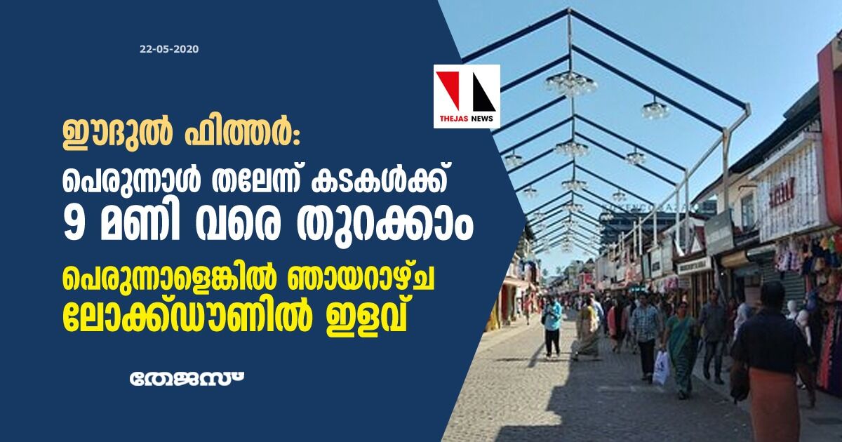 ഈദുല് ഫിത്തര്: പെരുന്നാള് തലേന്ന് കടകള്ക്ക് 9 മണി വരെ തുറക്കാം
