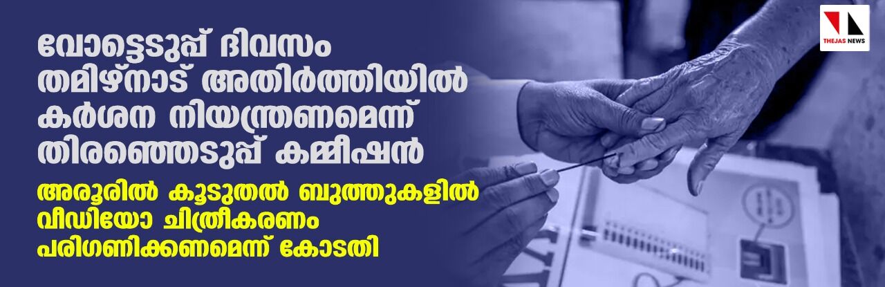 വോട്ടെടുപ്പ് ദിവസം തമിഴ്നാട് അതിര്ത്തിയില് കര്ശന നിയന്ത്രണമെന്ന് തിരഞ്ഞെടുപ്പ് കമ്മീഷന്; അരൂരില് കൂടുതല് ബുത്തുകളില് വീഡിയോ ചിത്രീകരണം പരിഗണിക്കണമെന്ന് കോടതി