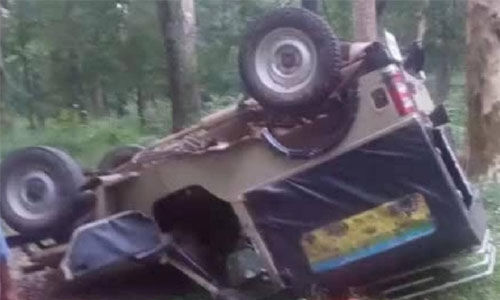 സുധാകരന്റെ മക്കളായ അനുഷ (3), ആദിത്യന് (2) ഹരിദാസിന്റെ മകന് കൃഷ്ണകുമാര് (12) എന്നിവര് ജീപ്പിലുണ്ടായിരുന്നുവെങ്കിലും പരിക്കുപറ്റാതെ രക്ഷപ്പെടുകയായിരുന്നു. പുലിമുണ്ടയില്നിന്ന് മൂത്തേടം കല്ക്കുളത്തേക്കുള്ള വനപാതയിലാണ് ആനയുടെ ആക്രമണമുണ്ടായത്. വഴിയരികില് പതിയിരുന്ന ഒറ്റയാന് ജീപ്പ് അടുത്തെത്തിയോടെ മുന്നോട്ടുചാടുകയും ജീപ്പ് മറിച്ചിടുകയുമായിരുന്നു. മൂന്നുതവണ മറിഞ്ഞാണ് ജീപ്പ് നിന്നതെന്ന് പരിക്കുപറ്റിയവര് പറഞ്ഞു.