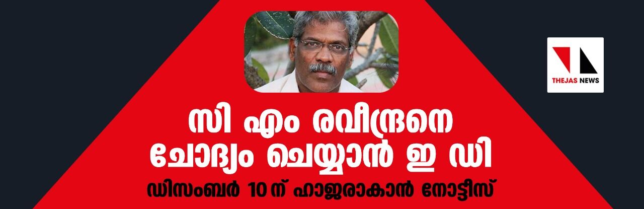 സി എം രവീന്ദ്രനെ ചോദ്യം ചെയ്യാന് ഇ ഡി ; ഡിസംബര് 10 ന് ഹാജരാകാന് നോട്ടീസ്