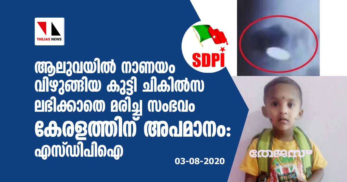 ആലുവയില് നാണയം വിഴുങ്ങിയ കുട്ടി ചികില്സ ലഭിക്കാതെ മരിച്ച സംഭവം കേരളത്തിന് അപമാനം : എസ്ഡിപിഐ