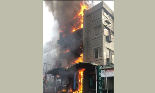 താഴെ വസ്ത്രവ്യാപാര ശാലയും മുകളില് ലോഡ്ജുമായി പ്രവര്ത്തിച്ചു വരുന്ന കെട്ടിടത്തിനാണ് രാവിലെ തീപ്പിടുത്തമുണ്ടായത്. ഷോര്ട്ട് സര്ക്യൂട്ട് ആണ് തീപടരാന് കാരണമെന്നാണ് പ്രാഥമിക നിഗമനം. കെട്ടിടത്തില് കുടുങ്ങിയ ആളുകളെ അഗ്നിശമന സേനയുടെ നേതൃത്വത്തില് പുറത്തെത്തിച്ചു
