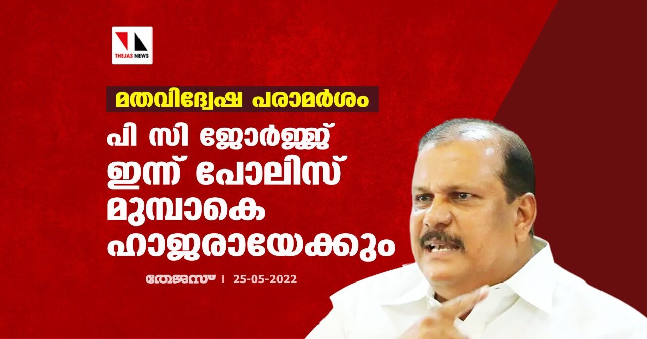 മതവിദ്വേഷ പരാമര്ശം: പി സി ജോര്ജ്ജ് ഇന്ന് പോലിസ് മുമ്പാകെ ഹാജരായേക്കും