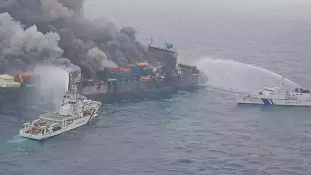 50 മണിക്കൂര് പിന്നിട്ടിട്ടും കപ്പലില് തീ അണയാതെ; നാല് കപ്പലുകള് കൂടി അപകടസ്ഥലത്തേക്ക്