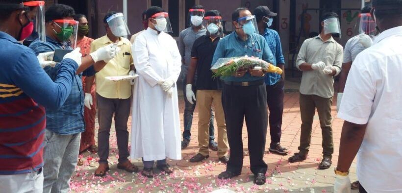 പൂന്തുറയിൽ ആരോഗ്യ പ്രവർത്തകരെ പൂക്കൾ നൽകി സ്വീകരിച്ചു