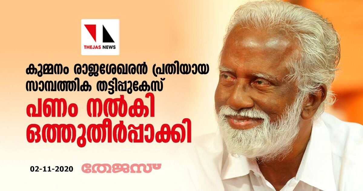 കോട്ടയം: ബിജെപി നേതാവ് കുമ്മനം രാജശേഖരന് പ്രതിയായ സാമ്പത്തിക തട്ടിപ്പുകേസ് പണം നൽകി ഒത്തുതീര്പ്പാക്കി. പരാതിക്കാരനായ ഹരികൃഷ്ണന് പരാതി പിന്വലിച്ചു. മുഴുവന് പണവും തിരികെക്കിട്ടിയെന്ന് പരാതിക്കാരന് പറഞ്ഞു. ഇതോടെയാണ് ഹരികൃഷ്ണന് പരാതി പിന്വലിച്ചത്.