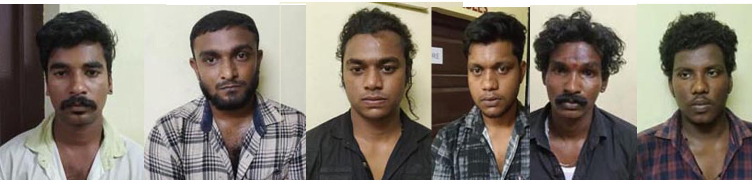 എസ്എന് പുരം വാടയില് മിഥുന് (20), പോളശ്ശേരി കായിപ്പുറത്ത് അമല് (23), അഖില് (21), വൈക്കം ദളവാക്കുളം അജിത്ത് (24), വാക്കേത്തറ പുത്തന്തറയില് കുഞ്ഞ് എന്ന് വിളിക്കുന്ന നിബിന് (30), മുണ്ടാര് ചാലിത്തറ അരുണ് (24) എന്നിവരെയാണ് അറസ്റ്റുചെയ്തത്.