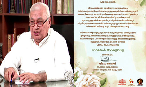 സ്ത്രീധനം ആവശ്യപ്പെടുകയോ കൊടുക്കുകയോ വാങ്ങുകയോ ഇല്ലെന്നു പ്രതിജ്ഞ ചെയ്തുകൊണ്ടുള്ള വിവാഹത്തിലൂടെയും ലിംഗനീതിയുടെ പാഠങ്ങള് ഉള്ക്കൊണ്ടുള്ള ജീവിതത്തിലൂടെയും മറ്റുള്ളവര്ക്കു മാതൃകയാകാന് കഴിയട്ടെ എന്നും ആശംസിക്കുന്നു.