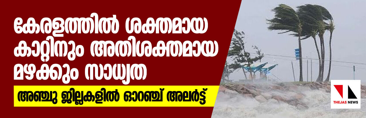 കേരളത്തിൽ അതിശക്തമായ മഴയ്ക്കും കാറ്റിനും സാധ്യത; അഞ്ച് ജില്ലകളിൽ ഓറഞ്ച് അലേർട്ട്