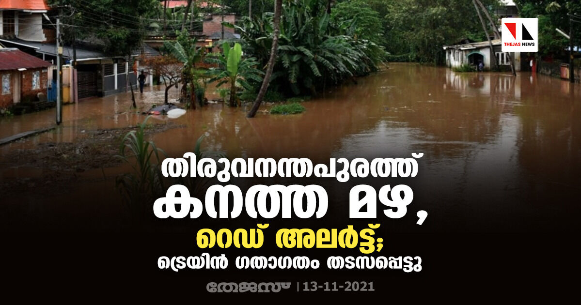 തിരുവനന്തപുരത്ത് കനത്ത മഴ, റെഡ് അലർട്ട്; ട്രെയിന് ഗതാഗതം തടസപ്പെട്ടു