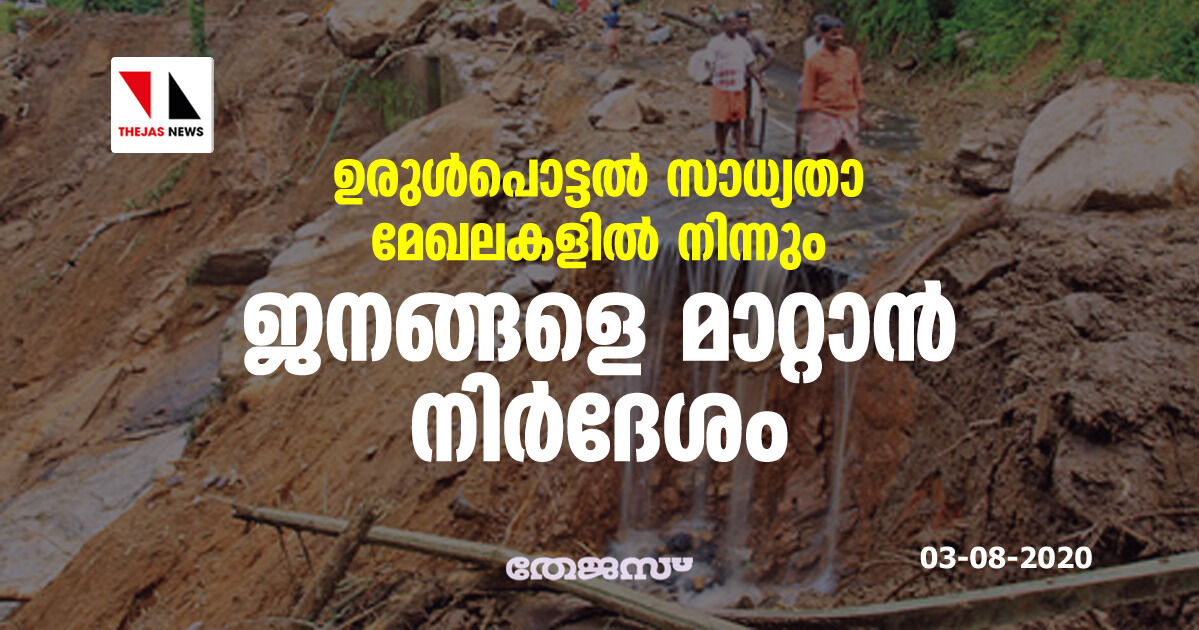 ഉരുള്പൊട്ടല് സാധ്യതാ മേഖലകളില് നിന്നും ജനങ്ങളെ മാറ്റാന് നിര്ദ്ദേശം