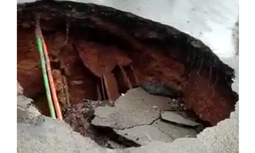 കനത്ത മഴ: മൂവാറ്റുപുഴയില് റോഡില് വന് ഗര്ത്തം