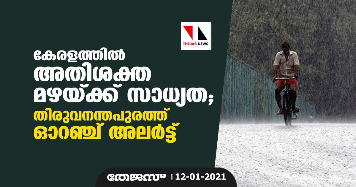 കേരളത്തില് അതിശക്ത മഴയ്ക്ക് സാധ്യത; തിരുവനന്തപുരത്ത് ഓറഞ്ച് അലര്ട്ട്