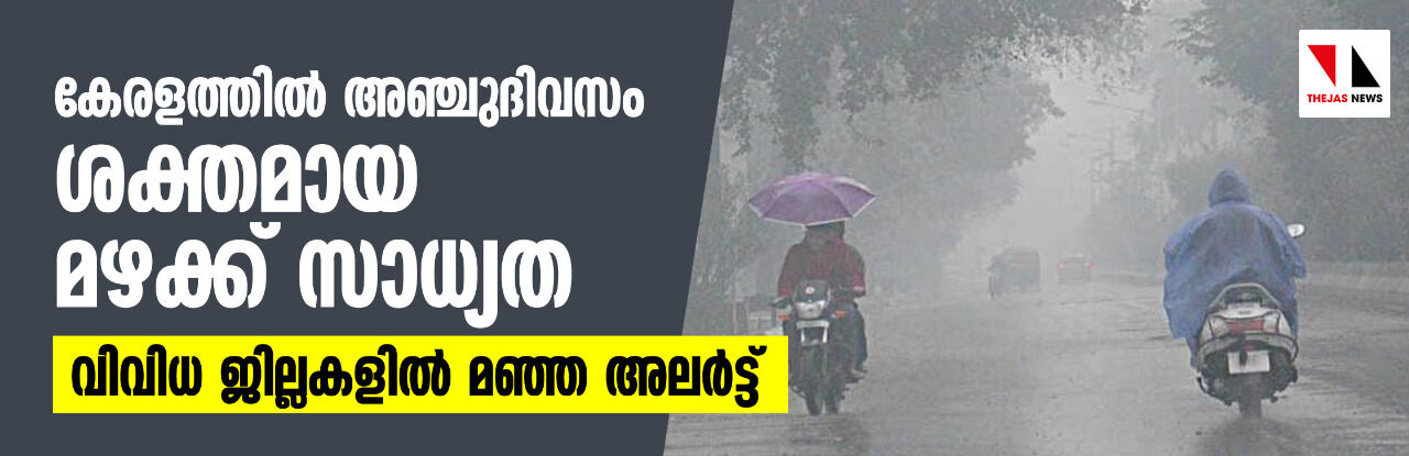 കേരളത്തിൽ അഞ്ചുദിവസം ശക്തമായ മഴക്ക് സാധ്യത; വിവിധ ജില്ലകളിൽ മഞ്ഞ അലർട്ട്