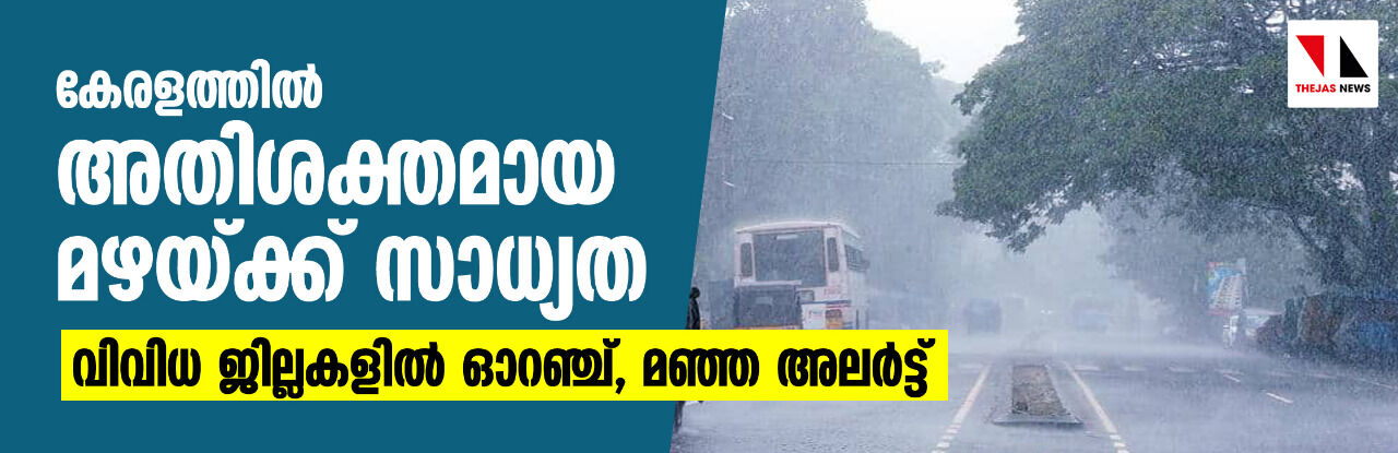 കേരളത്തിൽ അതിശക്തമായ മഴയ്ക്ക് സാധ്യത; വിവിധ ജില്ലകളിൽ ഓറഞ്ച്, മഞ്ഞ അലർട്ട്