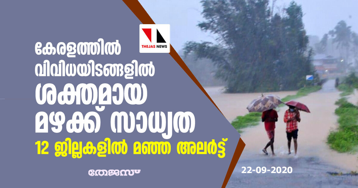 കേരളത്തിൽ ശക്തമായ മഴയ്ക്ക് സാധ്യത; 12 ജില്ലകളിൽ മഞ്ഞ അലർട്ട്