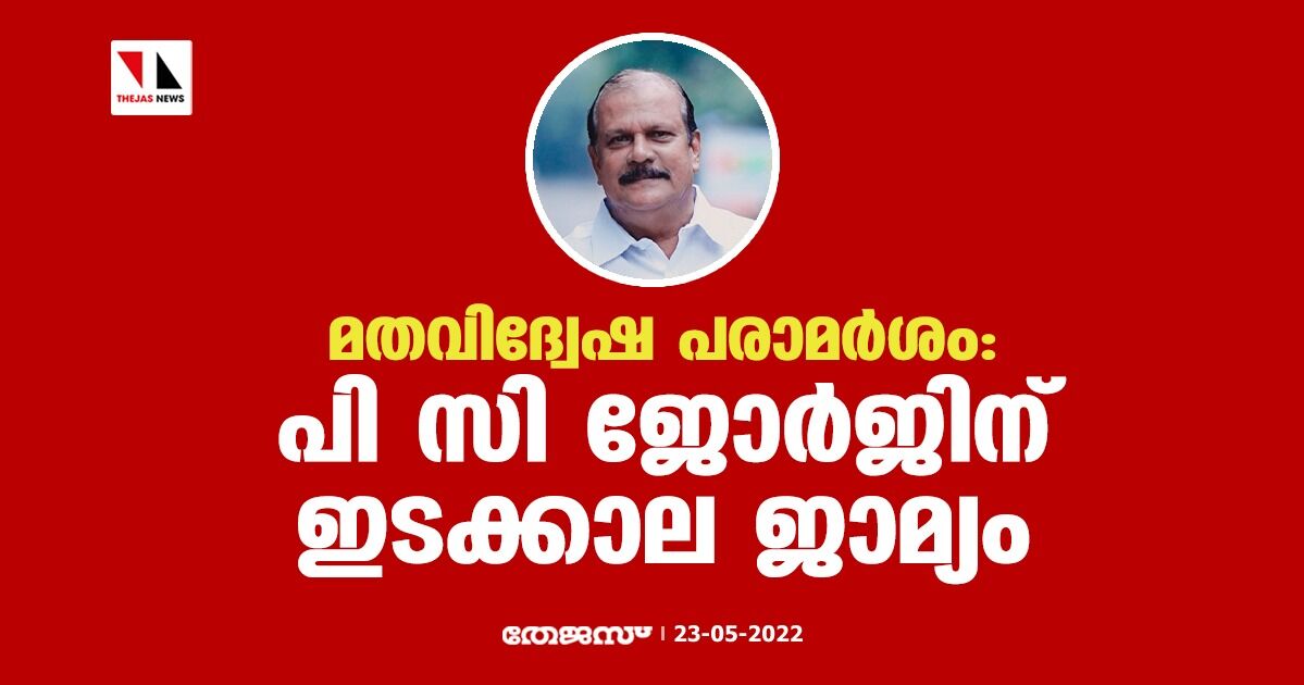 മതവിദ്വേഷ പരാമര്ശം: പി സി ജോര്ജ്ജിന് ഇടക്കാല ജാമ്യം