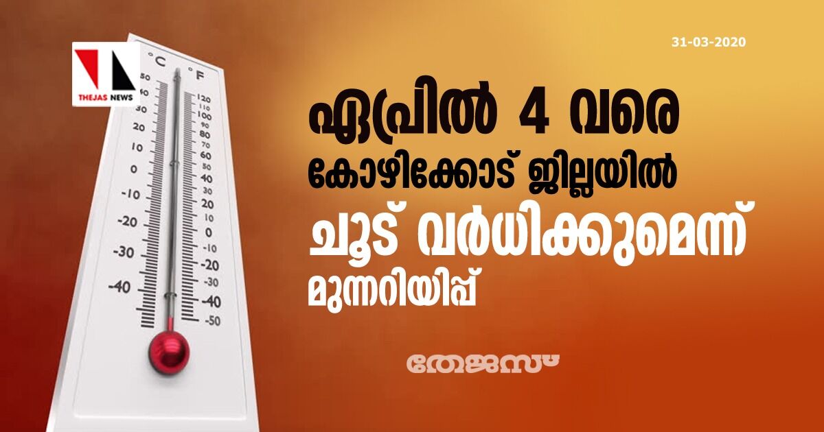 കോഴിക്കോട് ജില്ലയിൽ ഏപ്രിൽ 4 വരെ ചൂട് വർധിക്കുമെന്ന് മുന്നറിയിപ്പ്