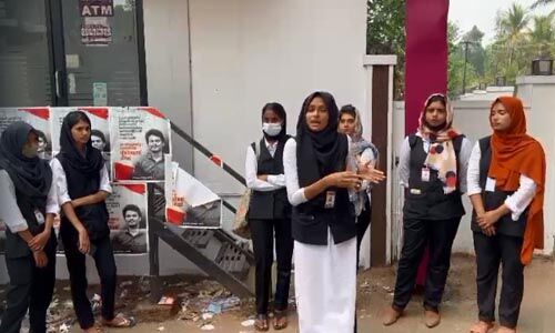 മതപരമായ അനുഷ്ടാനം എന്നതിനപ്പുറം പൗരന്റെ മൗലികാവകാശങ്ങള്ക്ക് മേലുള്ള കടന്നുകയറ്റമാണിത്. ബാബരിയില് തുടങ്ങി ഹിജാബിലൂടെ മറ്റുള്ളവയിലേക്ക് കടന്നുകയറുകയാണ് സംഘപരിവാര്. ഇതിനെതിരേ മതേതര സമൂഹം ഉണരണമെന്നും ആര്എസ്എസ്സിന്റെ ഇത്തരം അജണ്ടകളെ ജനാധിപത്യപരമായി പ്രതിരോധിക്കണമെന്നും വിദ്യാര്ഥികള് ആവശ്യപ്പെട്ടു. വിദ്യാര്ഥി പ്രതിനിധികളായ ടി ആദില, ഫാത്തിമ ഹംന, ആയിഷ റുമാന, ജിന്ഷ നിഷാദ്, റിഷ്ന മറിയം, സല്മ തെസ്നി തുടങ്ങിയവര് പ്രതിഷേധ പരിപാടിക്ക് നേതൃത്വം നല്കി.