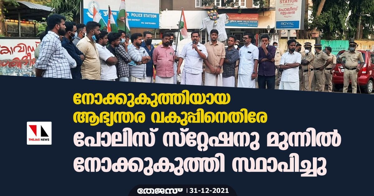 നോക്കുകുത്തിയായ ആഭ്യന്തര വകുപ്പിനെതിരേ പോലിസ് സ്റ്റേഷനു മുന്നിൽ നോക്കുകുത്തി സ്ഥാപിച്ചു