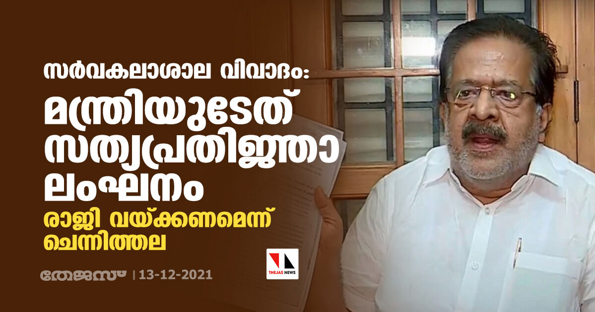 സര്വകലാശാല വിവാദം: മന്ത്രിയുടേത് സത്യപ്രതിജ്ഞാ ലംഘനം; രാജി വയ്ക്കണമെന്ന് ചെന്നിത്തല