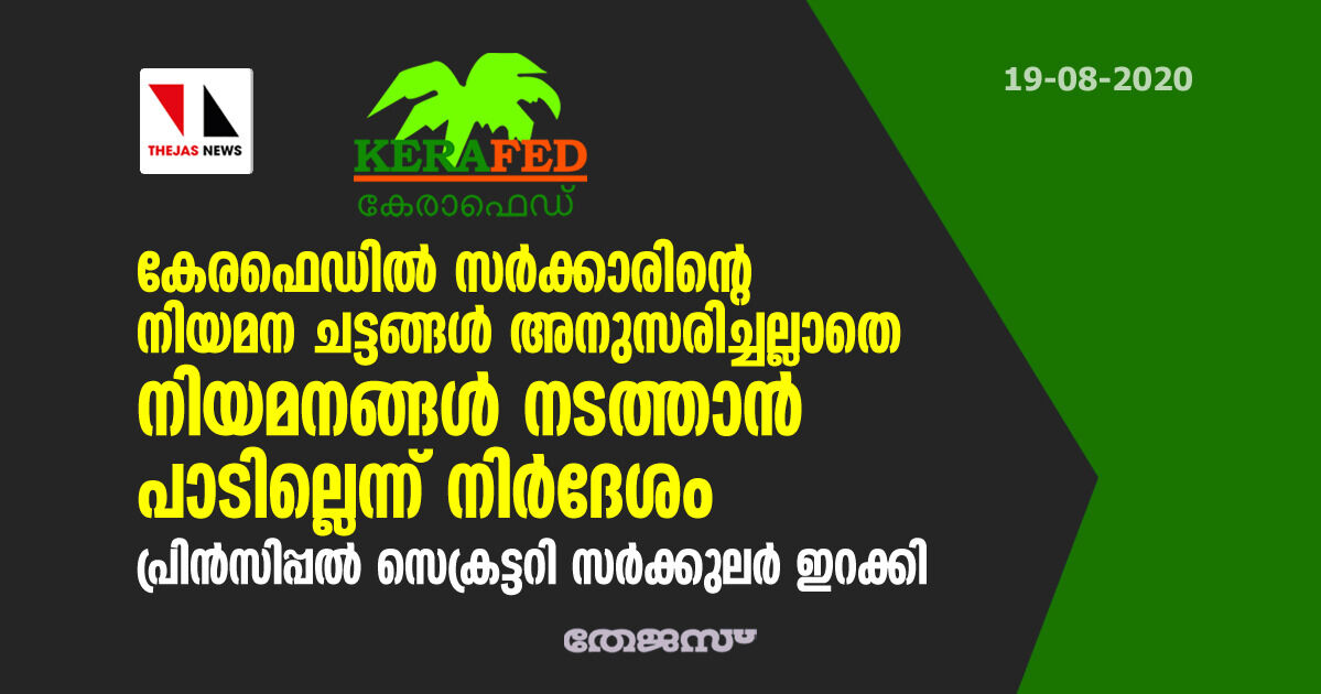 കേരഫെഡില് സര്ക്കാരിന്റെ നിയമന ചട്ടങ്ങള് അനുസരിച്ചല്ലാതെ നിയമനങ്ങള് നടത്താന് പാടില്ലെന്ന് നിര്ദേശം