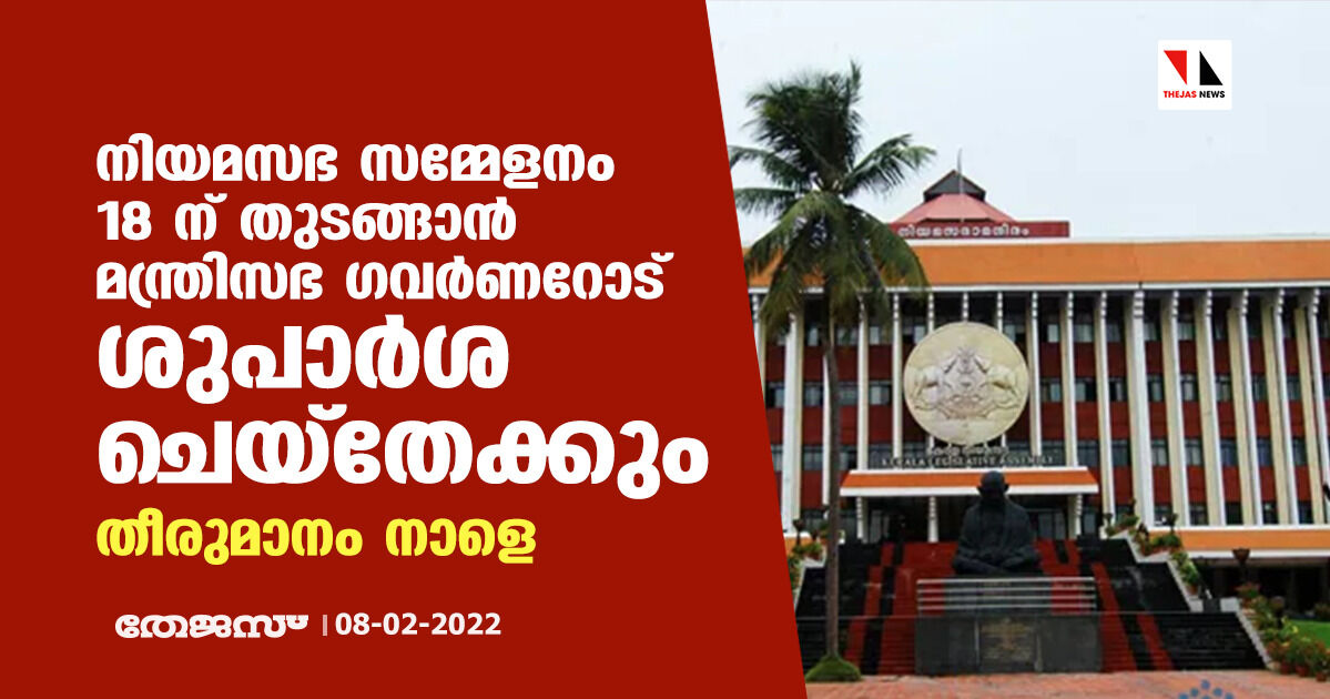 നിയമസഭ സമ്മേളനം 18 ന് തുടങ്ങാൻ മന്ത്രിസഭ ഗവർണറോട് ശുപാർശ ചെയ്തേക്കും; തീരുമാനം നാളെ