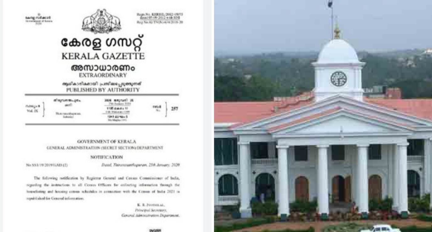 സംസ്ഥാനത്ത് ഒന്നാംഘട്ട സെൻസസിനുള്ള വിജ്ഞാപനം പുറത്തിറങ്ങി
