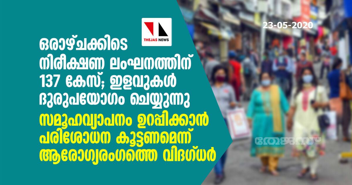 ഒരാഴ്ചക്കിടെ നിരീക്ഷണ ലംഘനത്തിന് 137 കേസ്; ഇളവുകള് ദുരുപയോഗം ചെയ്യുന്നു