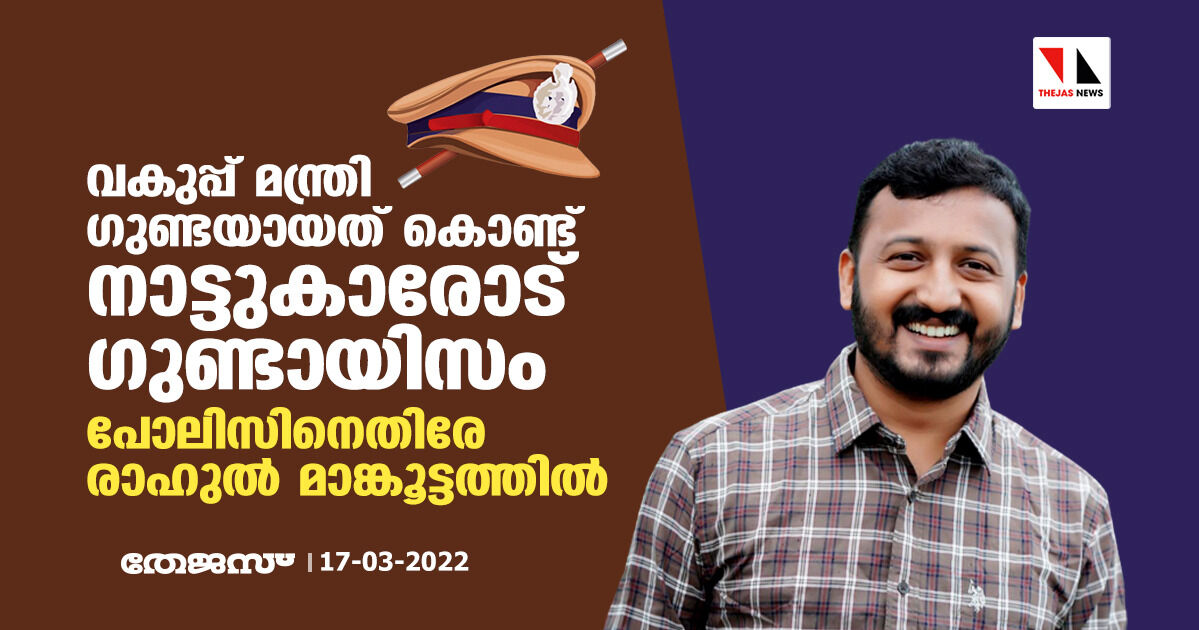 വകുപ്പ് മന്ത്രി ഗുണ്ടയായത് കൊണ്ട് നാട്ടുകാരോട് ഗുണ്ടായിസം; പോലിസിനെതിരേ രാഹുല് മാങ്കൂട്ടത്തില്