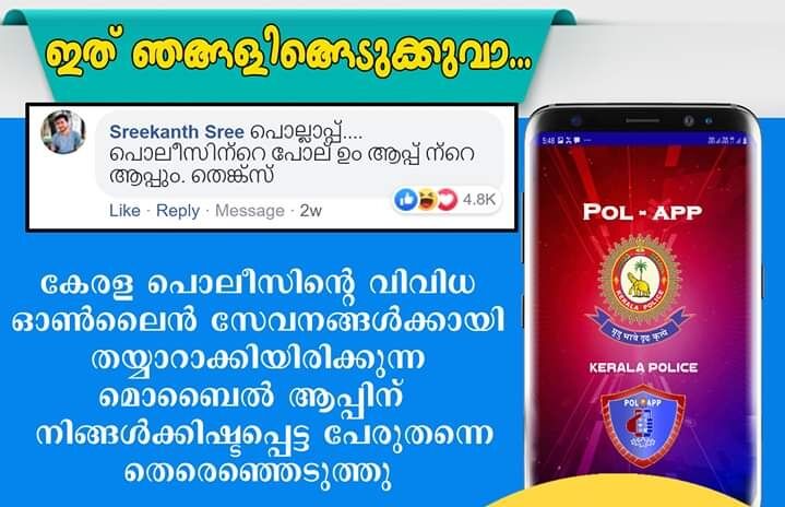 പൊല്ലാപ്പ്... പോലിസിൻ്റെ മൊബൈൽ ആപ്പിന് പേരായി