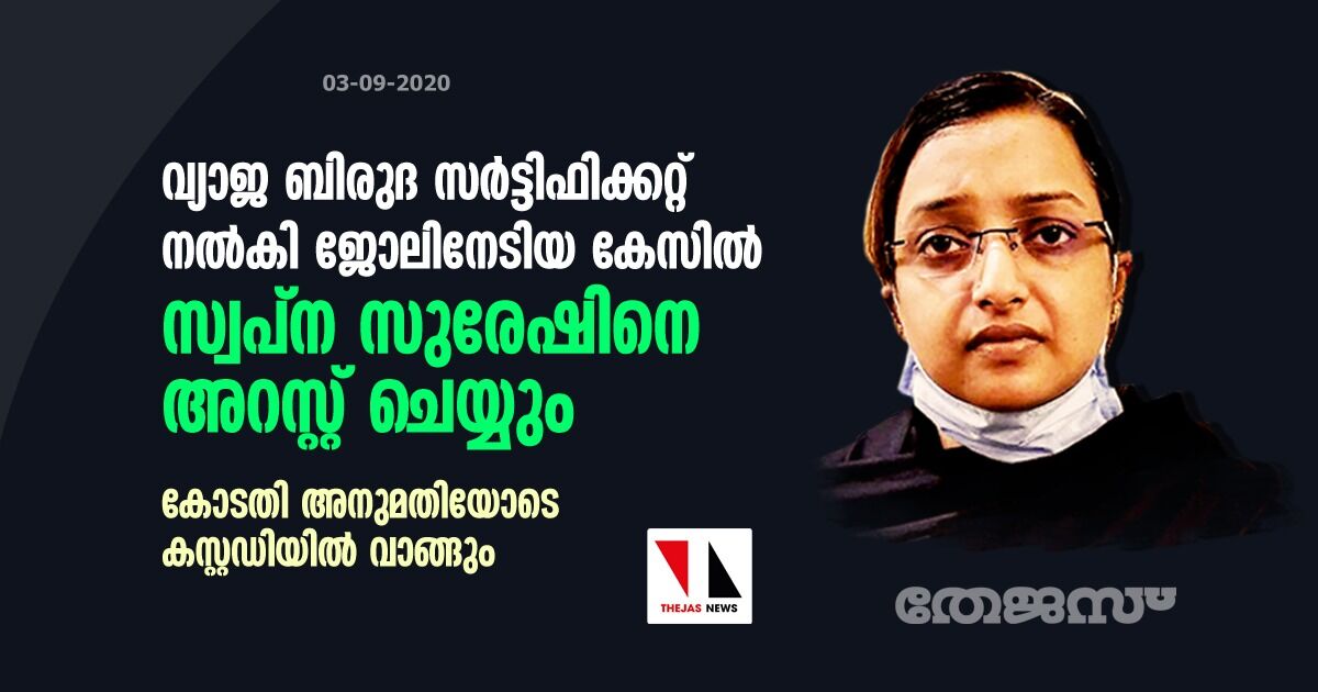 വ്യാജ ബിരുദ സര്ട്ടിഫിക്കറ്റ് നല്കി ജോലിനേടിയ കേസില് സ്വപ്ന സുരേഷിനെ അറസ്റ്റ് ചെയ്യും