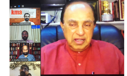 ചൈനയുടെ നീക്കങ്ങള്ക്ക് രാജ്യാന്തര പിന്തുണ ലഭിക്കുമെന്ന് പ്രതീക്ഷിക്കുന്നില്ല. ഇന്ത്യന് മേഖലയിലേക്ക് കടന്നു കയറാന് ശ്രമിക്കുന്ന ചൈനക്കാര് അവിടം ഒഴിവാക്കുമെന്ന് താന് കരുതുന്നില്ലെന്നും അദ്ദേഹം പറഞ്ഞു.കൊവിഡിന്റെ ആക്രമണം ഉണ്ടായില്ലെങ്കിലും ഇന്ത്യന് സാമ്പത്തിക രംഗം താഴേക്ക് പോകുമായിരുന്നു. അടുത്ത വര്ഷത്തോടെ കൊവിഡ് ഇല്ലാതാകുമെന്നും അതോടെ കാര്യങ്ങള് തിരികെ പിടിക്കാന് സാധിച്ചേക്കുമെന്നും സുബ്രഹ്മണ്യംസ്വാമി പറഞ്ഞു.കേരള മാനേജ്മെന്റ് അസോസിയേഷന് പ്രസിഡന്റ് ജിബു പോള്, കെ എം എ പ്രോഗ്രാം കമ്മിറ്റി ചെയര്മാന് എസ് രാജ്മോഹന് നായര്, സീനിയര് വൈസ് പ്രസിഡന്റ് ആര് മാധവ് ചന്ദ്രന്, ഹോണററി സെക്രട്ടറി ബിബു പുന്നൂരാന് സംസാരിച്ചു.
