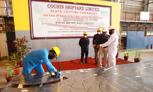 ബോട്ടിന്റെ അലൂമിനിയം ചട്ടക്കൂടിനുള്ള പ്ലേറ്റ് കട്ടിങ് ചടങ്ങില് കപ്പല്ശാല ചെയര്മാനും എംഡിയുമായ മധു എസ് നായര്, കൊച്ചി മെട്രോ എംഡി അല്കേഷ് കുമാര് ശര്മ്മ തുടങ്ങിയവര് പങ്കെടുത്തു. ഈ വര്ഷം അവസാനത്തോടെ ആദ്യ ബോട്ട് നീറ്റിലിറക്കാനാണ് ലക്ഷ്യമിടുന്നത്. പൂര്ണമായും ബാറ്ററിയില് പ്രവര്ത്തിക്കുന്ന യാത്രാ ബോട്ടുകള് ലോകത്തു തന്നെ ഇതാദ്യമായിട്ടാണ് നിര്മിക്കുന്നതെന്ന് മധു എസ് നായര് പറഞ്ഞു. തദ്ദേശീയ സാങ്കേതിക വിദ്യ ഉപയോഗിച്ചു നിര്മിക്കുന്ന ബോട്ടുകള് സമയബന്ധിതമായി കെഎംആര്എലിനു കൈമാറുമെന്നും അദ്ദേഹം വ്യക്തമാക്കി.