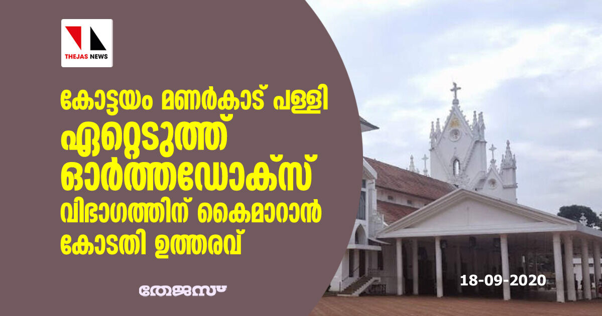 കോട്ടയം മണര്കാട് പള്ളി ഏറ്റെടുത്ത് ഓര്ത്തഡോക്സ് വിഭാഗത്തിന് കൈമാറാന് കോടതി ഉത്തരവ്