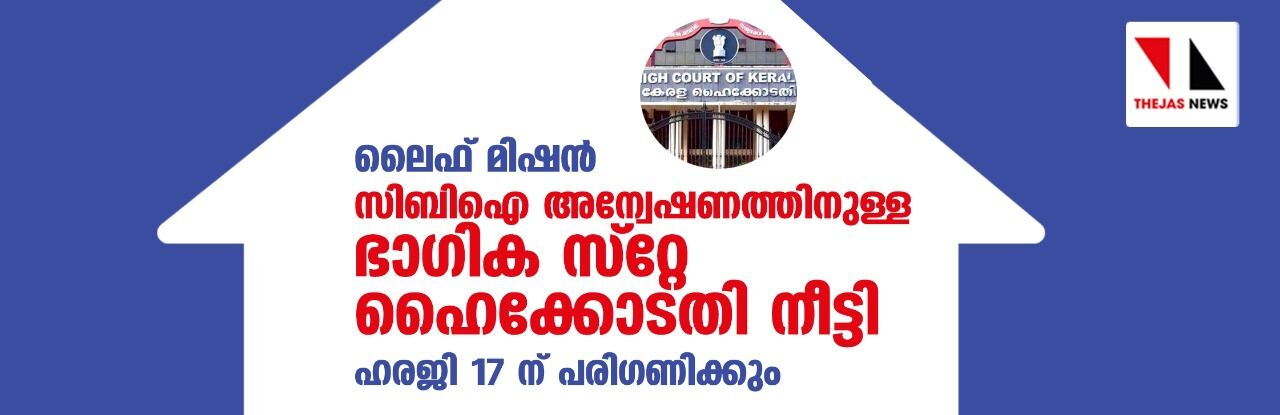 ലൈഫ് മിഷന്: സിബി ഐ അന്വേഷണത്തിനുള്ള ഭാഗിക സ്റ്റേ ഹൈക്കോടതി നീട്ടി;ഹരജി 17 ന് പരിഗണിക്കും