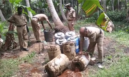 അരംഗമുഗള് പെരിങ്ങാലി കുളത്തിന്റെ കരയില് അന്പത് ലിറ്റര് വീതം കൊള്ളുന്ന പത്ത് പ്ലാസ്റ്റിക് ബാരലുകളിലാണ് കോട ഒളിപ്പിച്ചിരുന്നത്. വ്യാഴാഴ്ച പകല് ഒന്നോടെയാണ് കോട കണ്ടെടുത്തത്. അശോകന് ഒളിവിലാണ്.