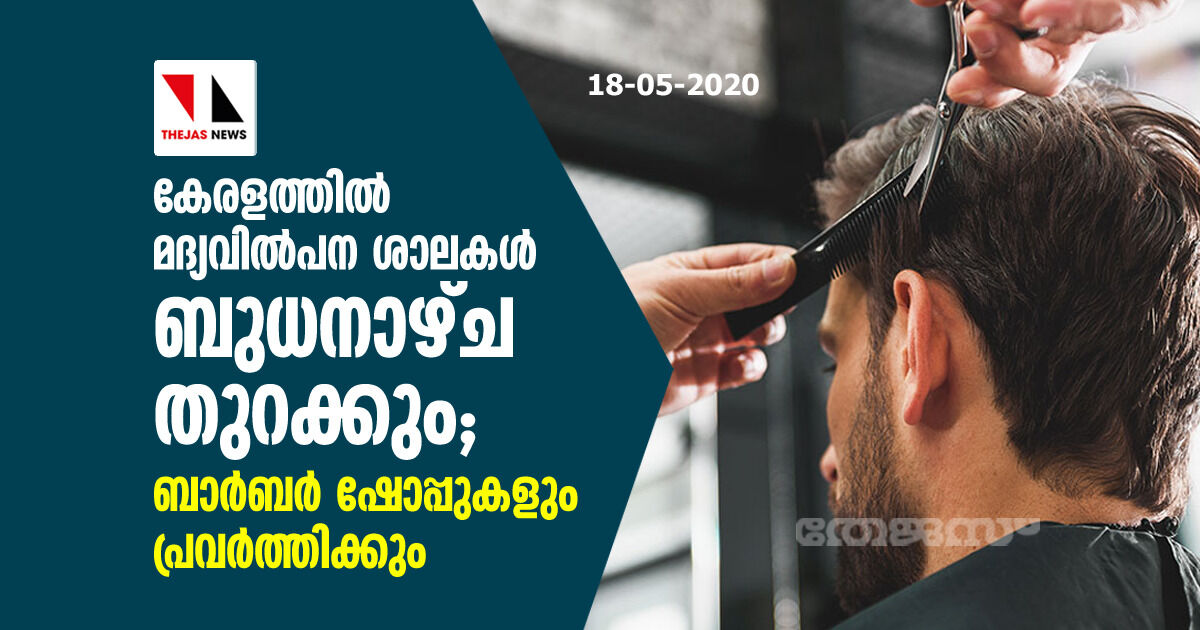 കേരളത്തില് മദ്യവിൽപന ശാലകള് ബുധനാഴ്ച തുറക്കും; ബാര്ബര് ഷോപ്പുകളും പ്രവർത്തിക്കും