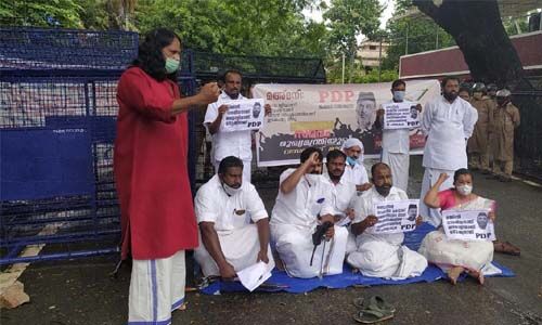 മഅ്ദനിയുടെ ജീവന് രക്ഷിക്കാന് അടിയന്തര ഭരണകൂട ഇടപെടലാവശ്യപ്പെട്ട് പിഡിപി സംസ്ഥാന ഭാരവാഹികള് മുഖ്യമന്ത്രിയുടെ വസതിക്ക് മുന്നില് നടത്തിയ കുത്തിയിരിപ്പ് സമരം വൈസ് ചെയര്മാന് വര്ക്