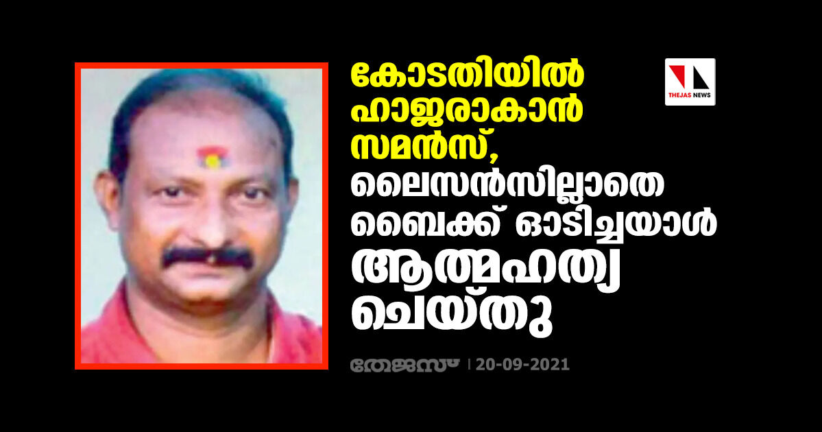 കോടതിയില് ഹാജരാകാന് സമന്സ്, ലൈസന്സില്ലാതെ ബൈക്ക് ഓടിച്ചയാള് ആത്മഹത്യ ചെയ്തു