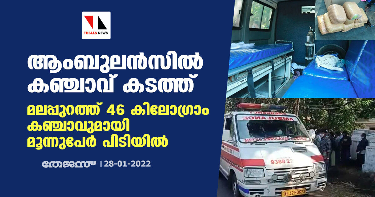 ആംബുലന്സില് കഞ്ചാവ് കടത്ത്; മലപ്പുറത്ത് 46 കിലോഗ്രാം കഞ്ചാവുമായി മൂന്നുപേര് പിടിയില്