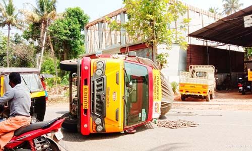 മൈദ കയറ്റിയ മിനിലോറി തലകീഴായി മറിഞ്ഞു; ഡ്രൈവര് അത്ഭുതകരമായി രക്ഷപ്പെട്ടു