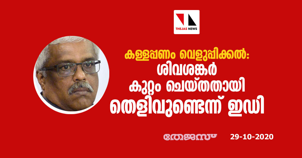 കള്ളപ്പണം വെളുപ്പിക്കല്: ശിവശങ്കര് കുറ്റം ചെയ്തതായി തെളിവുണ്ടെന്ന് ഇ ഡി