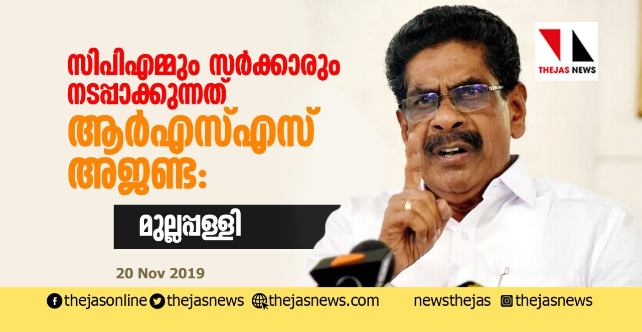 സിപിഎമ്മും സര്ക്കാരും നടപ്പാക്കുന്നത് ആര്എസ്എസ് അജണ്ട: മുല്ലപ്പള്ളി