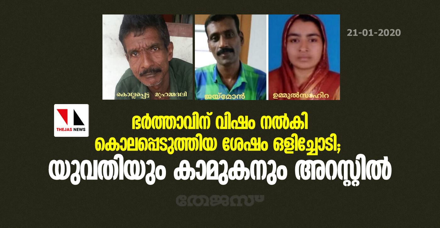 ഭര്ത്താവിന് വിഷം നല്കി കൊലപ്പെടുത്തിയ ശേഷം ഒളിച്ചോടി; യുവതിയും കാമുകനും അറസ്റ്റില്
