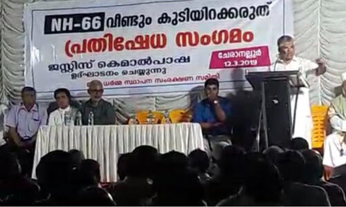 കൊച്ചി: ഭൂമി വിലയും ജന, കെട്ടിട സാന്ദ്രതയും ഏറെ കൂടുതലുള്ള എറണാകൂളം ജില്ലയില് 45 മീറ്റര് വീതിയിലുളള ദേശീയ പാത വികസനത്തിനായി ജനങ്ങളെ ആവര്ത്തിച്ച് കുടിയൊഴിപ്പിക്കുന്നതിന് പകരം എലിവേറ്റഡ് ഹൈവേ എന്ന ബദല് നടപ്പാക്കുകയാണ് വേണ്ടതെന്ന് റിട്ട. ജസ്റ്റിസ് കെമാല് പാഷ. ദേശീയപാത വികസനത്തിന്റെ മറവില് വീണ്ടും കുടിയിറക്കുന്നതിനെതിരെ ചേരാനെല്ലൂരില് മത-ധര്മ്മസ്ഥാപന സംരക്ഷണസമിതിയുടെ ആഭിമുഖ്യത്തില് നടന്ന പ്രതിഷേധ സംഗമം ഉദ്ഘാടനം ചെയ്യുകയായിരുന്നു അദ്ദേഹം.ഇത്രയും വലിയ കുടിയൊഴിപ്പിക്കല് ഉള്ള പദ്ധതി ആയിട്ടുപോലും സാമൂഹിക ആഘാത പഠനം പോലും നടത്താത്തത് നീതിയല്ല. ജീവിക്കാനുള്ള അവകാശം എല്ലാ പൗരന്മാര്ക്കും ഉണ്ട്. അത് കവര്ന്നെടുക്കാന് സര്ക്കാരിനെന്നല്ല ആര്ക്കും അധികാരമില്ല. ജനങ്ങളുടെ കയ്യില് നിന്ന് ഭൂമി തട്ടി പറിച്ചെടുക്കുന്നത് പരിതാപകരമാണ്. നിലവില് ആറുവരിപാതയ്ക്കുള്ള സ്ഥലം ഏറ്റെടുത്തിട്ടുണ്ട്. അവിടെ വികസനം സാധ്യമാക്കിയ ശേഷം മാത്രമേ അടുത്ത പദ്ധതിയെപ്പറ്റി ആലോചിക്കാന് പാടുള്ളൂ.