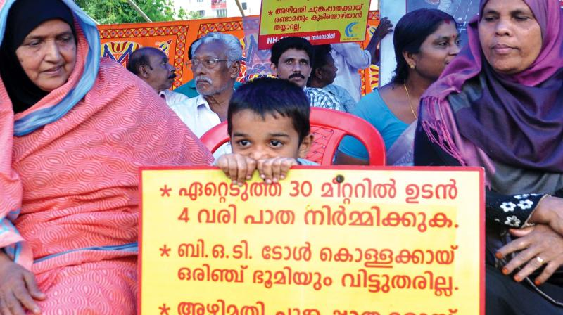 ഏറ്റെടുത്ത 30 മീറ്ററില് അടിയന്തരമായി ആറുവരിപ്പാത നിര്മ്മിക്കുക, അല്ലെങ്കില് 10 വരി എലിവേറ്റഡ് ഹൈവേ നിര്മ്മിക്കുക, ചേരാനല്ലൂര് കണ്ടെയ്നര് റോഡ് ജംഗ്ഷനില് അടക്കം എല്ലാ കവലകളിലും അനേകം കുടുംബങ്ങളെ തെരുവാധാരമാക്കുന്ന നിര്ദ്ദിഷ്ട 45 മീറ്റര് അലൈന്മെന്റും പദ്ധതിയും ഉപേക്ഷിക്കുക, ദേശീയപാതയില് ഭീമമായ ടോള് ഏര്പ്പെടുത്താനുളള നീക്കം ഉപേക്ഷിക്കുക എന്നീ ആവശ്യങ്ങളുന്നയിച്ചാണ് സമരം.രണ്ടായിരത്തിലധികം കുടുംബങ്ങള് പദ്ധതിക്കെതിരെ രേഖാമൂലം വിയോജിപ്പ് രേഖപ്പെടുത്തിയ സാഹചര്യത്തില് നടപടികള് നിര്ത്തിവച്ച് സര്ക്കാര് പുനരാലോചനക്ക് തയ്യാറാവണമെന്ന് സമരസമിതി ആവശ്യപ്പെട്ടു.