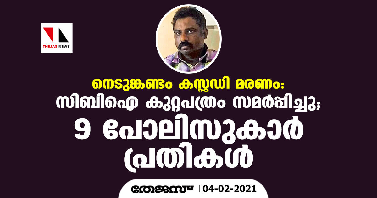 നെടുങ്കണ്ടം കസ്റ്റഡി മരണം: സിബിഐ കുറ്റപത്രം സമര്പ്പിച്ചു; ഒമ്പതു പോലിസുകാര് പ്രതികള്